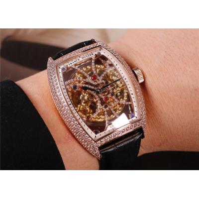 Home AAA-Brand Replica Models A21j Automatic Movement Mens Watch Skeleton Diamonds Dial Diamonds Case Leather Strap E35