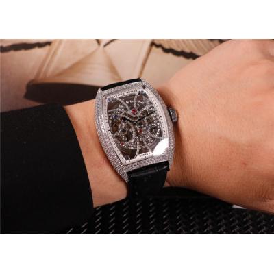 Replica Grand Complication A21j Automatic Movement Mens Watch Black Dial Diamonds Case Leather Strap E37 $204.00 $170.00