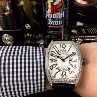 Replica Models A21j Automatic Movement Mens Watch White Dial Diamonds Case Leather Strap E09