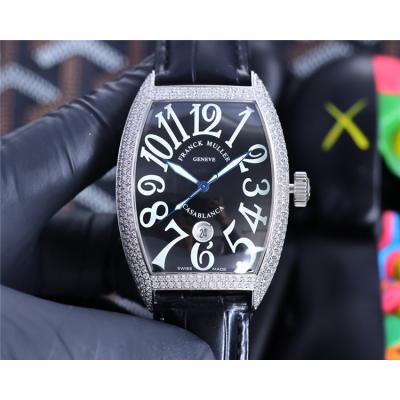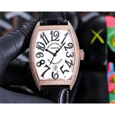 Replica Models A21j Automatic Movement Mens Watch White Dial Diamonds Case Leather Strap G21