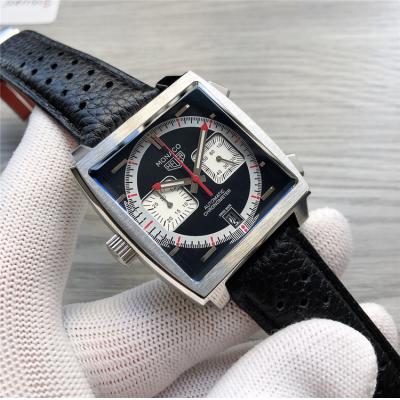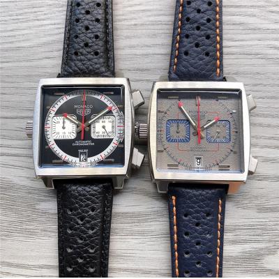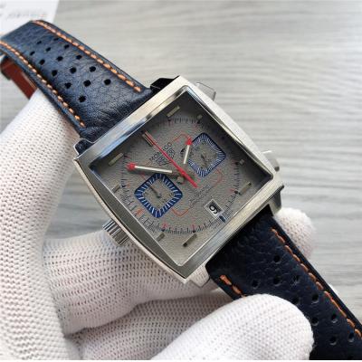 Home AAA-Brand Replica Monaco Japan Quartz chronograph Mens Watch Gray Dial Leather Strap A