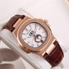 Replica Nautilus A21j Automatic Movement Mens Watch Black Dial Leather Strap A E150