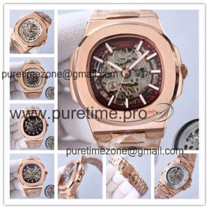 Replica Nautilus A21j Automatic Movement Mens Watch Skeleton Dial Rose Gold E214 $186.00 $155.00