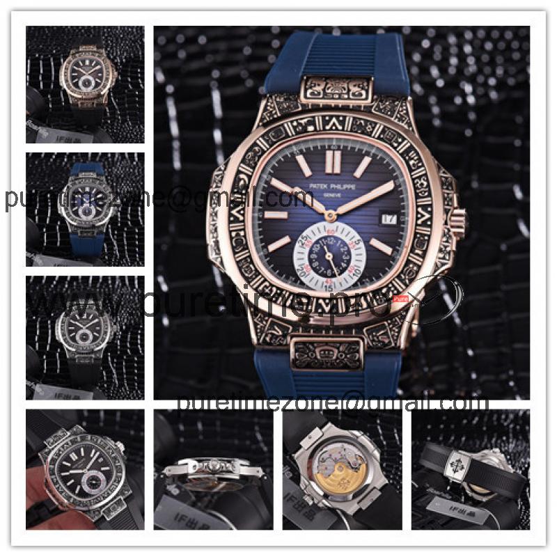 Replica Nautilus A21j Automatic Movement Mens Watch Blue Dial Rubber Strap E17