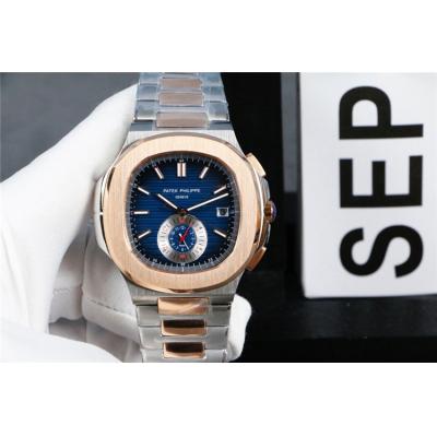 Replica Nautilus A21j Automatic Movement Mens Watch Blue Dial Two Tone Rose Gold E103