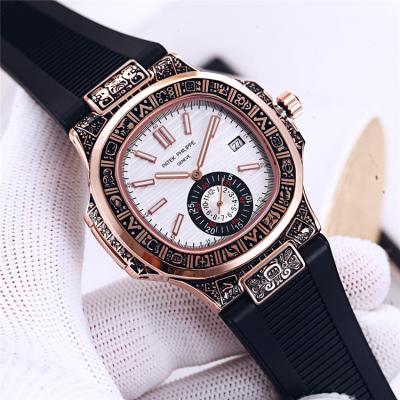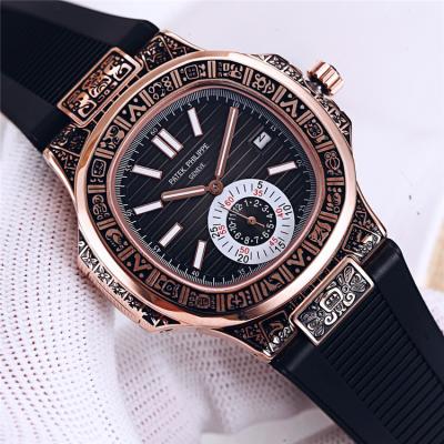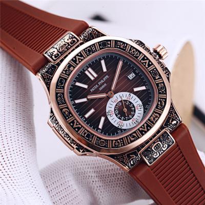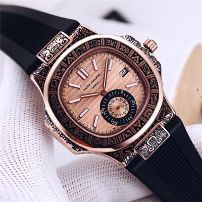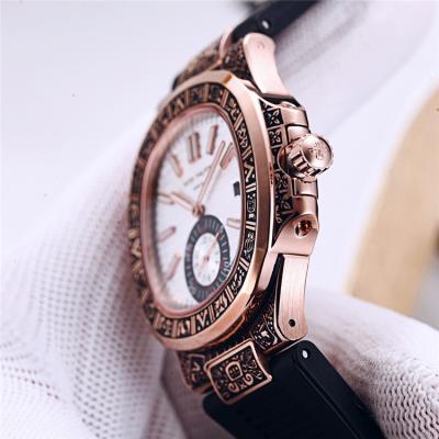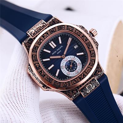 Home AAA-Brand Replica Nautilus A21j Automatic Movement Mens Watch Blue Dial Vintage Engraving Rose Gold Case Rubber Strap A E128