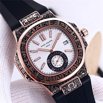 Replica Nautilus A21j Automatic Movement Mens Watch White Dial Vintage Engraving Steel Case Rubber Strap B E128 $276.00 $230.00