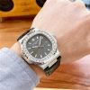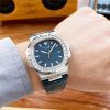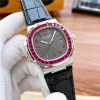 Replica Nautilus A21j Automatic Movement Mens Watch Gray Dial Diamonds Case Leather Strap D E217 $216.00 $180.00