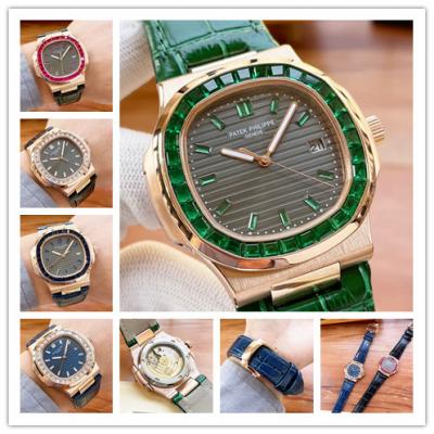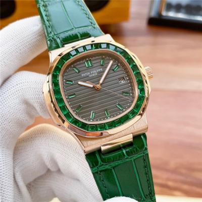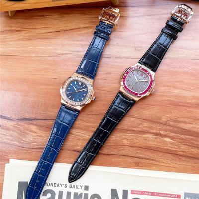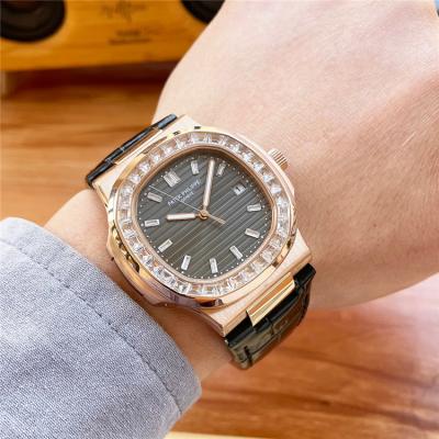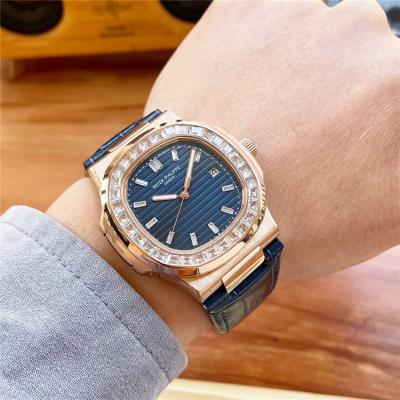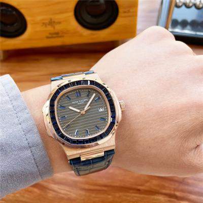 Home AAA-Brand Replica Nautilus A21j Automatic Movement Mens Watch Gray Dial Diamonds Case Leather Strap D E217