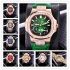 Home AAA-Brand Replica Nautilus A21j Automatic Movement Mens Watch Green Dial Diamonds Case Leather Strap C E146
