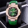 Replica Nautilus A21j Automatic Movement Mens Watch Green Dial Diamonds Case Leather Strap C E146