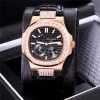 Replica Nautilus A21j Automatic Movement Mens Watch Black Dial Diamonds Case Leather Strap B E146 $192.00 $160.00