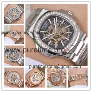 Replica Nautilus A4813 Automatic Movement Mens Watch Skeleton Dial Diamonds Case Stainless Steel E31 $240.00 $200.00