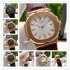 Replica Nautilus A21j Automatic Movement Mens Watch Silver Dial Leather Strap B E145