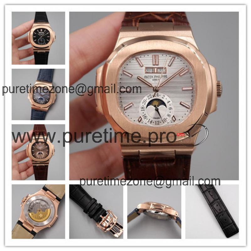 Replica Nautilus A21j Automatic Movement Mens Watch Silver Dial Leather Strap F E18