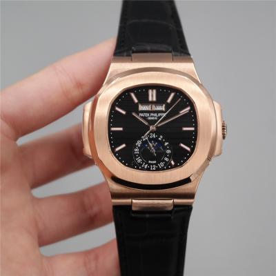Replica Nautilus A21j Automatic Movement Mens Watch Black Dial Leather Strap G E18 $360.00 $300.00