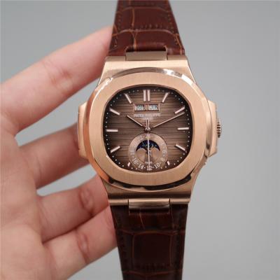 Replica Nautilus A21j Automatic Movement Mens Watch Black Dial Leather Strap E E18 $360.00 $300.00