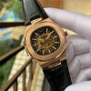 Replica Nautilus A21j Automatic Movement Mens Watch Skeleton Dial Leather Strap A E95