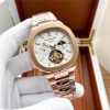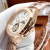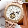 Replica Nautilus A21j Automatic Movement Mens Watch White Tourbillon Dial Rose Gold B E180