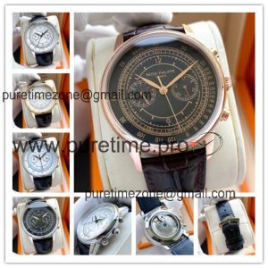 Replica Grand Complications A21j Automatic Movement Mens Watch Black Dial Leather Strap E161 $186.00 $155.00
