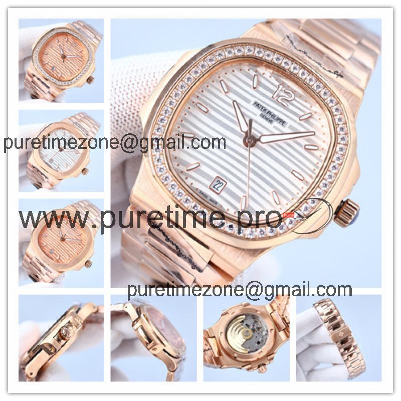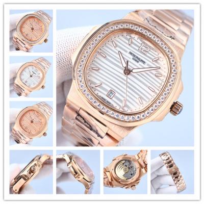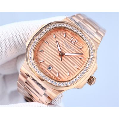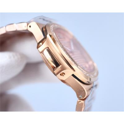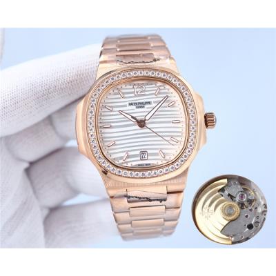 Replica Nautilus Japan Miyota 8215 Automatic Mens Watch Silver Dial Diamonds Case Rose Gold A E213