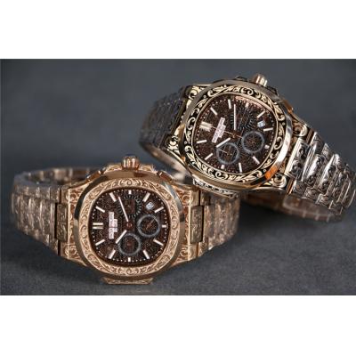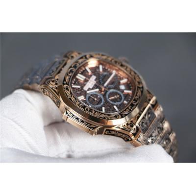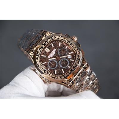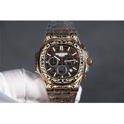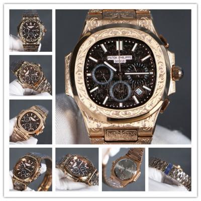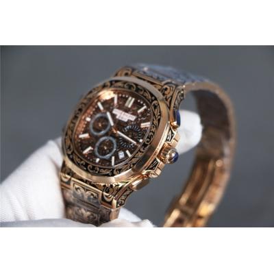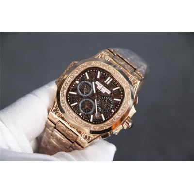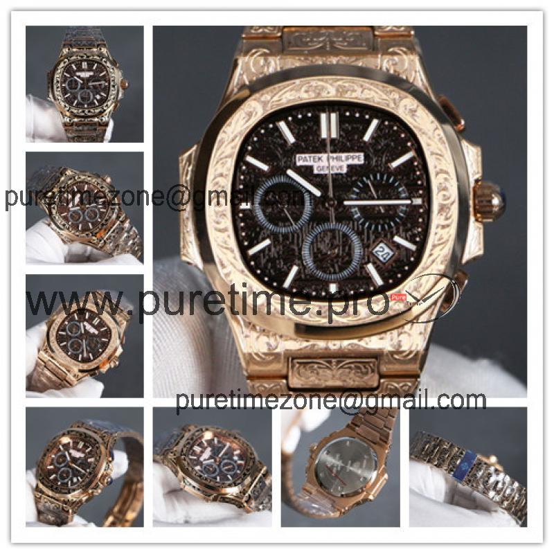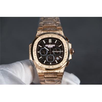 Home AAA-Brand Replica Nautilus Japan Quartz Movement Mens Watch Black Dial Vintage Engraving Rose Gold Bracelet B E140