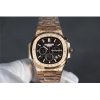 Replica Nautilus Japan Quartz Movement Mens Watch Black Dial Vintage Engraving Rose Gold Bracelet B E140