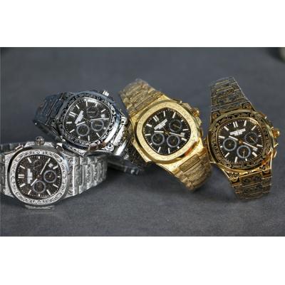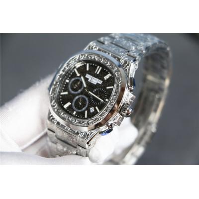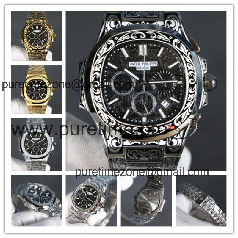 Replica Nautilus Japan Quartz Movement Mens Watch Black Dial Vintage Engraving Steel Bracelet A E140