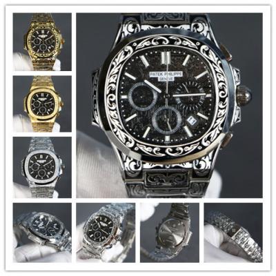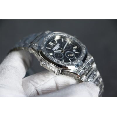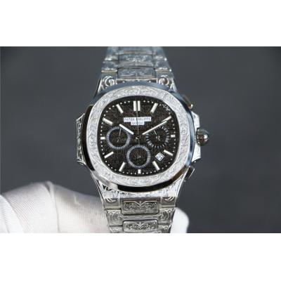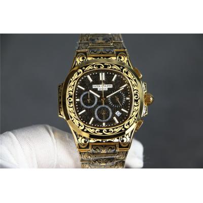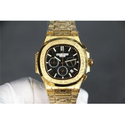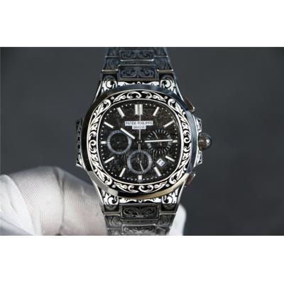 Home AAA-Brand Replica Nautilus Japan Quartz Movement Mens Watch Black Dial Vintage Engraving Steel Bracelet A E140