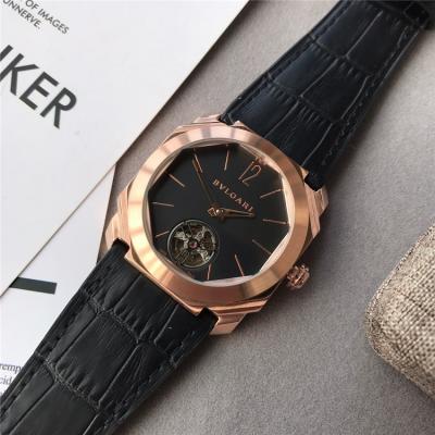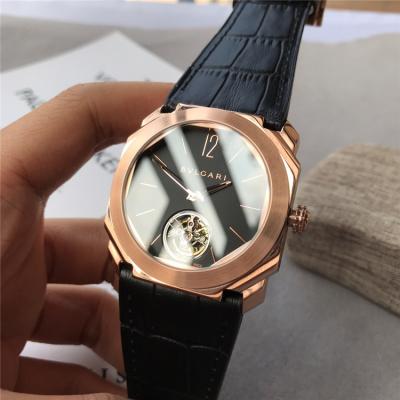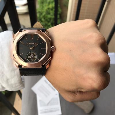 Replica Octo A21j Automatic Movement Mens Watch Black Dial Leather Strap E12