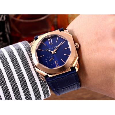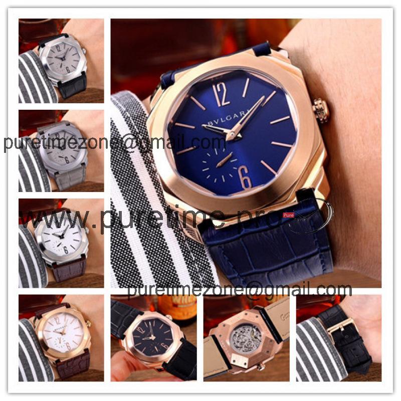 Replica Octo A21j Automatic Movement Mens Watch Blue Dial Leather Strap B G09