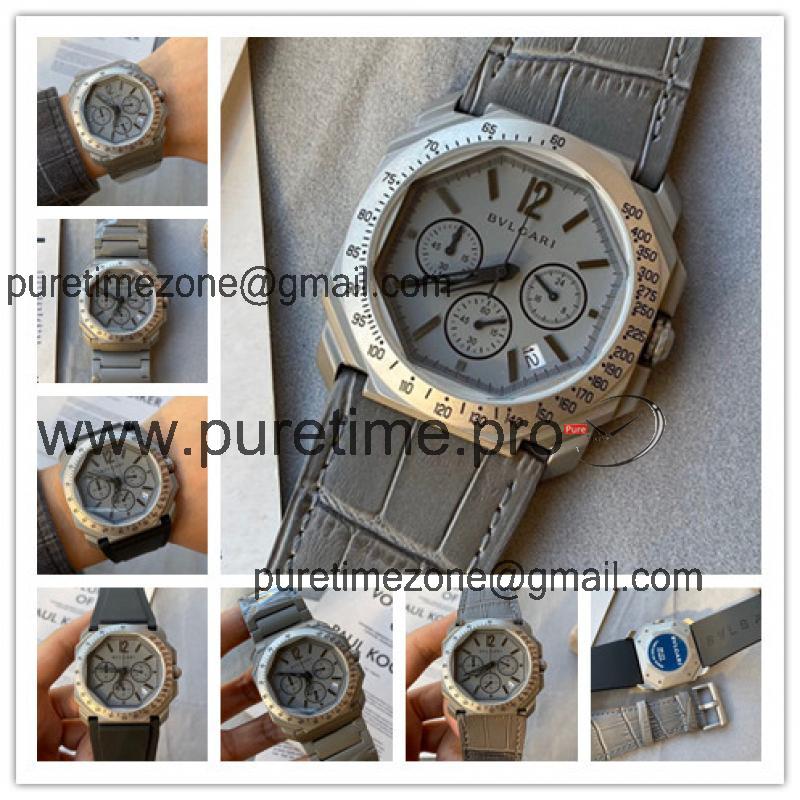 Home AAA-Brand Replica Octo A21j Automatic Movement Mens Watch Gray Dial Leather Strap F01