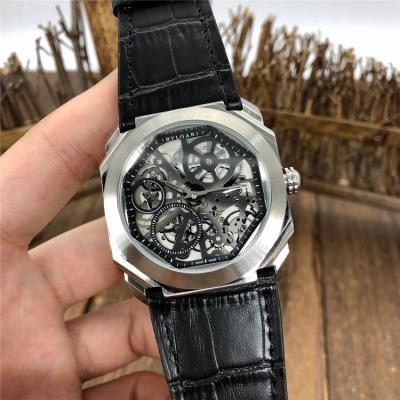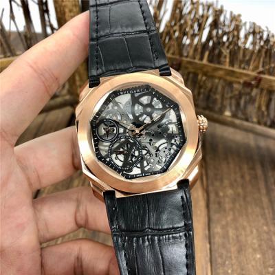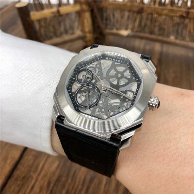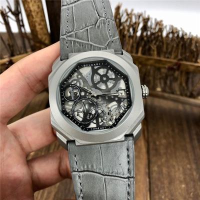 Replica Octo A21j Automatic Movement Mens Watch Skeleton Dial Leather Strap E46