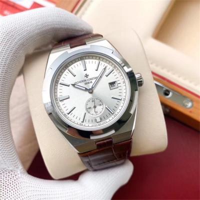 Home AAA-Brand Replica Overseas A21j Automatic Movement Mens Watch Silver Dial Leather Strap E132