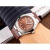 Replica Overseas A2813 Automatic Movement Mens Watch Silver Dial Leather Strap E18