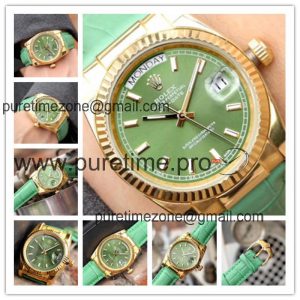 Replica Day-Date A2813 Automatic Movement Mens Watch Green Dial Leather Strap E31 $144.00 $120.00