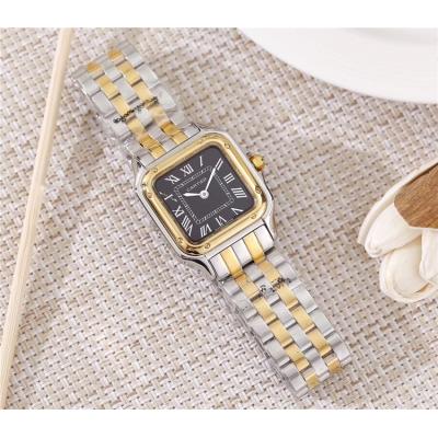 Replica Panthère Swiss Quartz Movement Womens Watch Black Dial Two Tone Yellow Gold A E68