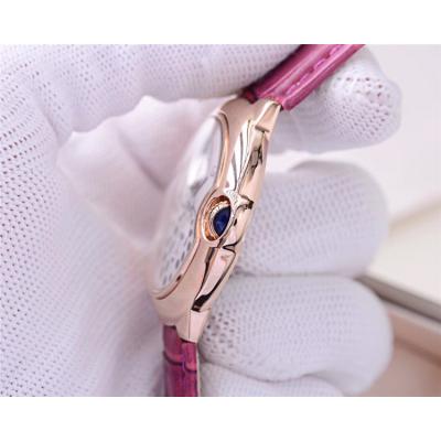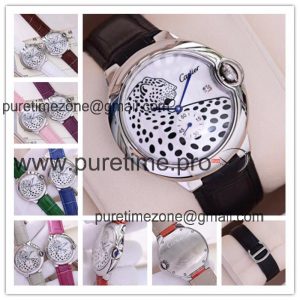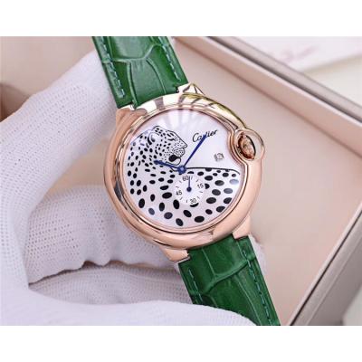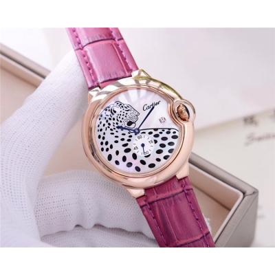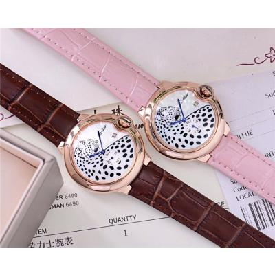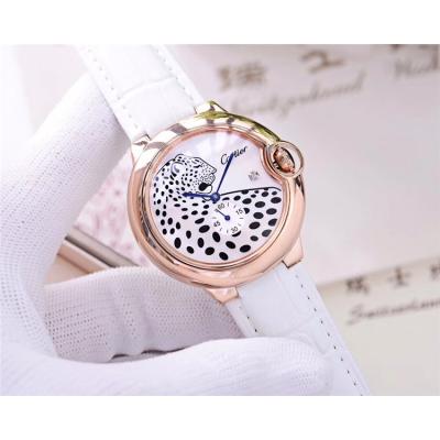 Home AAA-Brand Replica Panthère Swiss Quartz Movement Womens Watch Cheetah Dial Leather Strap B E86