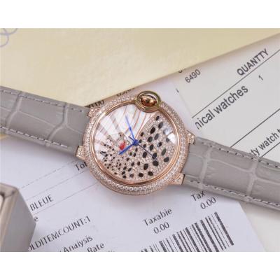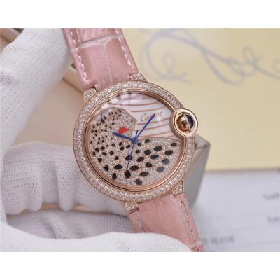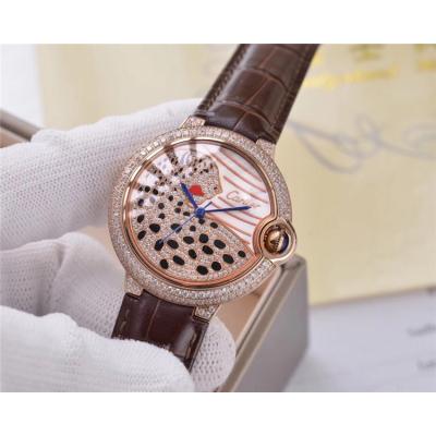 Replica Panthère Swiss Quartz Movement Womens Watch Cheetah With Diamond Dial Leather Strap A E74