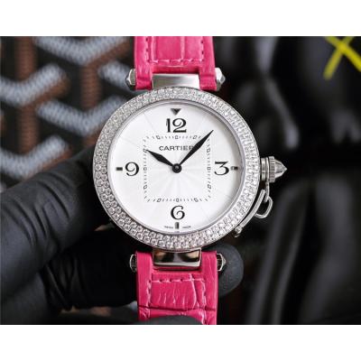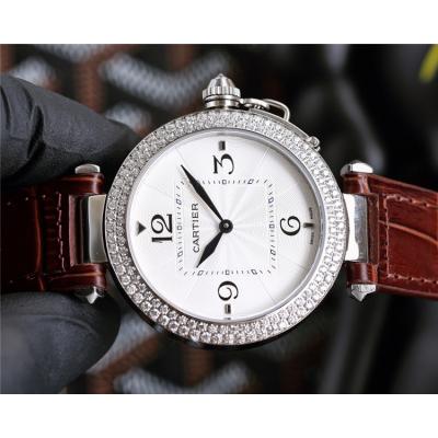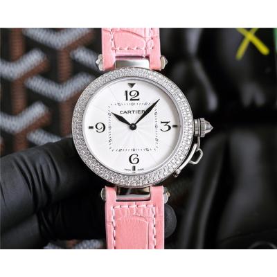 Replica Pasha Swiss Quartz Movement Womens Watch White Dial Leather Strap A G11