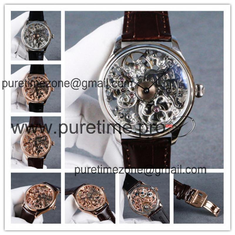 Replica Pilot A21j Automatic Movement Mens Watch Skeleton Dial Leather Strap E48
