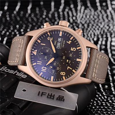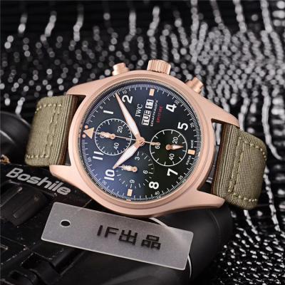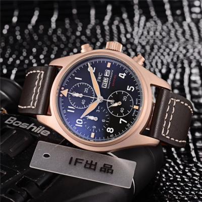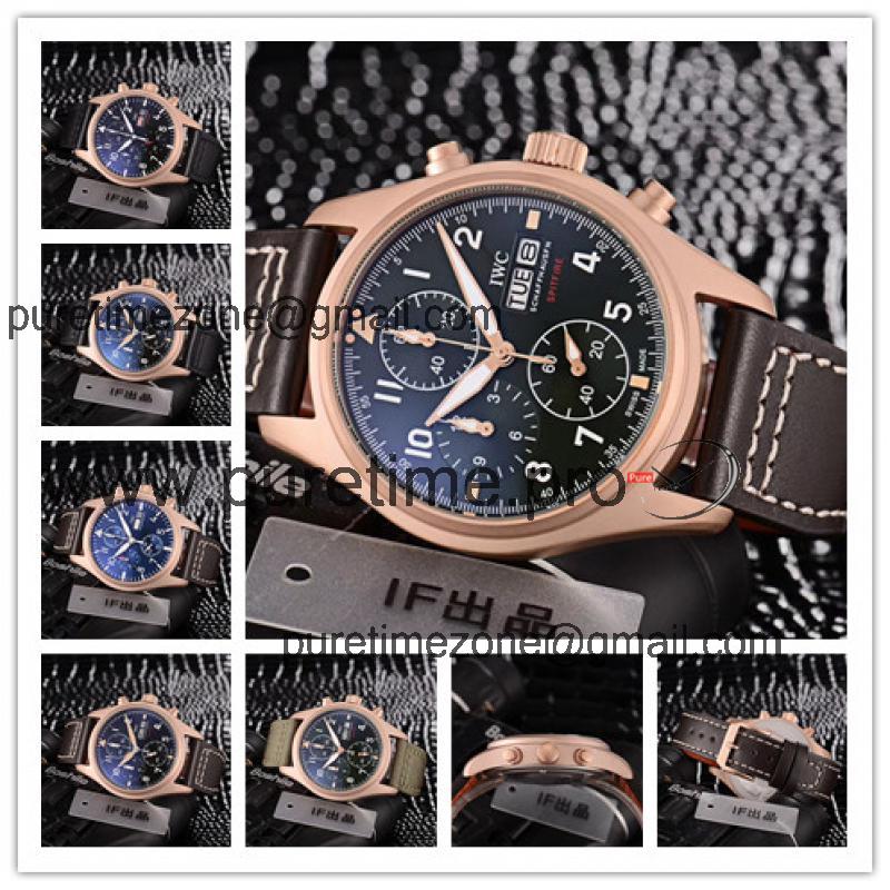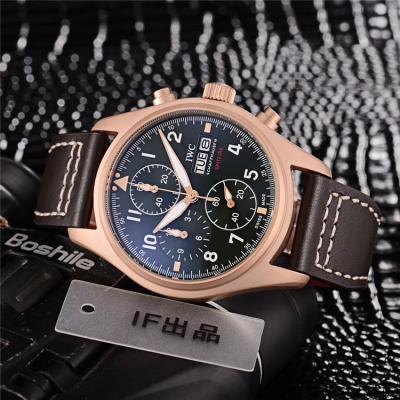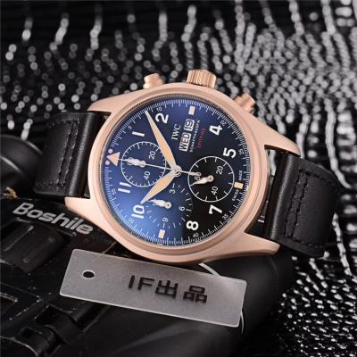 Home AAA-Brand Replica Pilot Japan Quartz Chronograph Movement Mens Watch Black Dial Leather Strap B E121