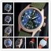 Home AAA-Brand Replica Pilot Japan Quartz Chronograph Movement Mens Watch Green Dial Nylon Strap A E124