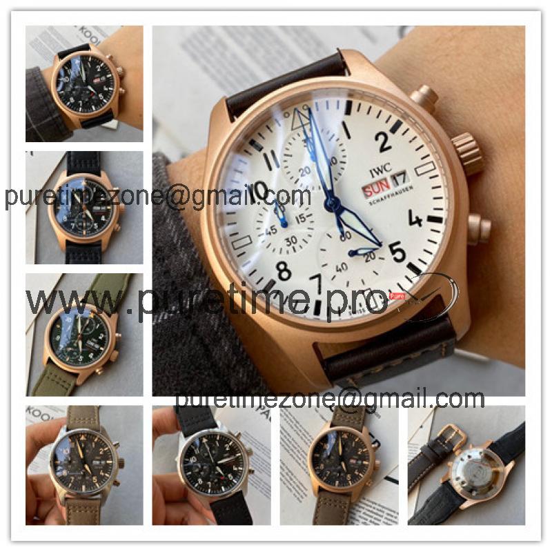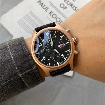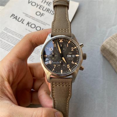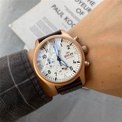 Home AAA-Brand Replica Pilot Japan Quartz Chronograph Movement Mens Watch White Dial Leather Strap E73