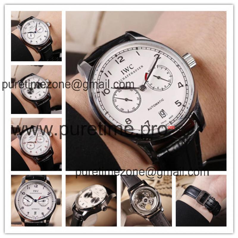 Replica Portugieser A21j Automatic Movement Mens Watch White Dial Leather Strap A E03