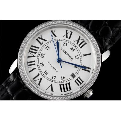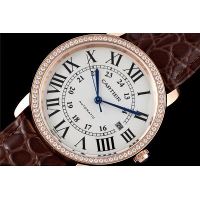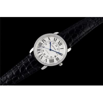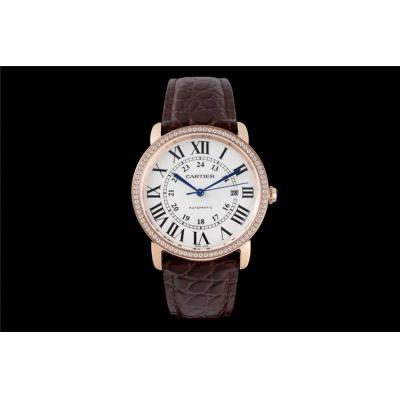 Replica Ronde A21j Automatic Movement Mens Watch Full Diamonds Dial Leather Strap E260 $432.00 $360.00