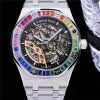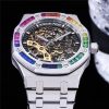 Home AAA-Brand Replica Royal Oak 15407 Rainbow Diamond Bezel Skeleton Dial Stainless Steel Bracelet E207