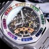Replica Royal Oak 15407 Rainbow Diamond Bezel Skeleton Dial Stainless Steel Bracelet E207