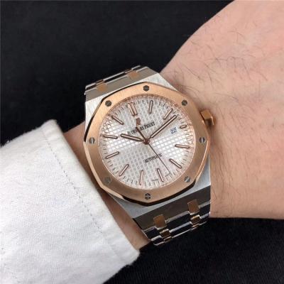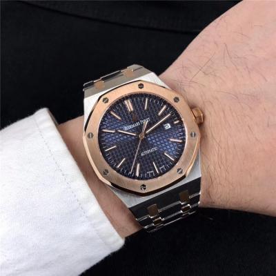 Replica Royal Oak A21J Automatic Movement Mens Watch Black Dial Two Tone Rose Gold B E46