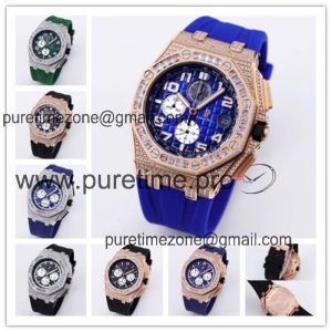 Replica Royal Oak Offshore Japan Quartz chronograph Movement Mens Watch Blue Dial Diamonds Case Rubber Strap E222 $456.00 $380.00